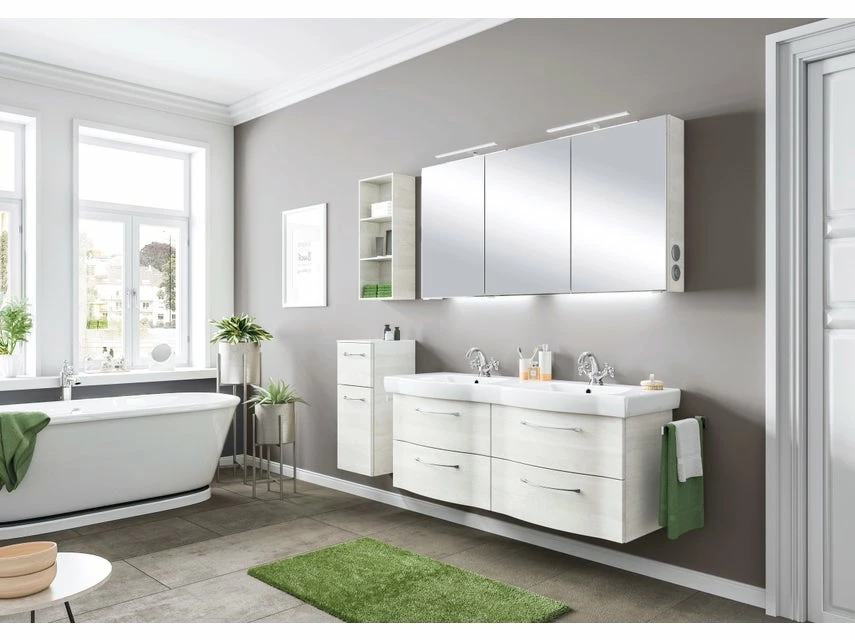 Mit dem Highboard Athen holen Sie sich ein besonders modernes Möbel in Ihr Badezimmer. Kosmetika und Pflegeprodukte des täglichen Bedarfs sind hier perfekt unterzubringen.