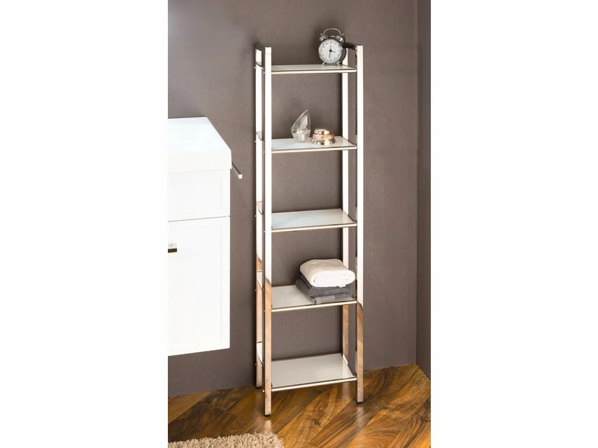 Holen Sie sich mit dem offenen Regal Linda ein nützliches Accessoire in Ihr Badezimmer. Die Glaseinlegeböden werden von einem Gestell aus poliertem Edelstahl stabil getragen und bieten Platz für die Aufbewahrung von Pflegeprodukten und Badtextilien.