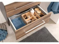 Das Waschtisch-Set Lacona präsentiert sich in harmonischer, natürlicher Optik in Ihrem Badezimmer. Im geräumigen Waschbecken-Unterschrank finden Sie in den beiden geräumigen Schublade Platz für Ihre Pflegeprodukte und kuschelige Badtextilien. Das Mineralguss-Waschbecken in strahlendem Weiß rundet das Set perfekt ab.