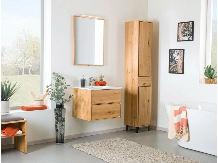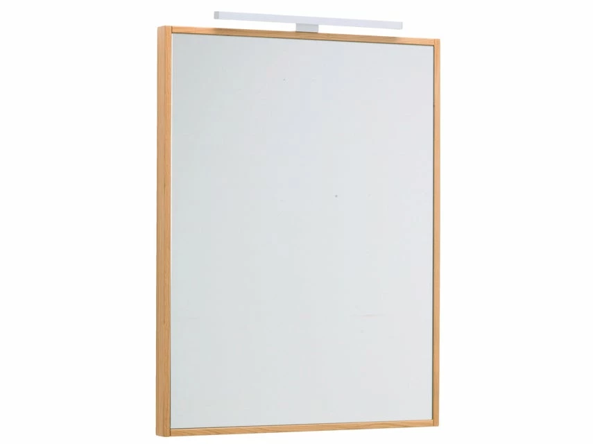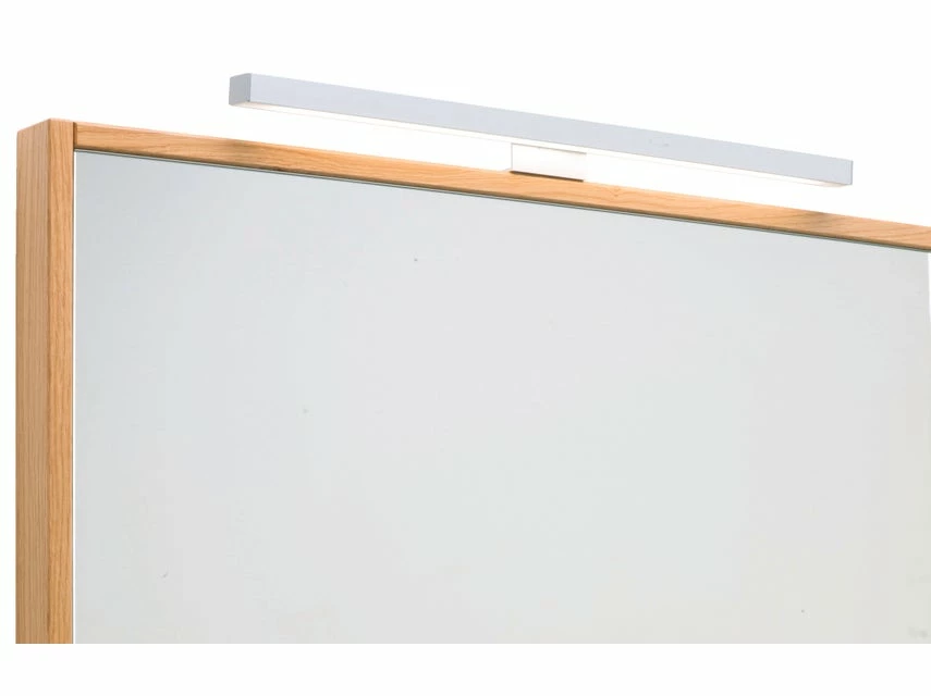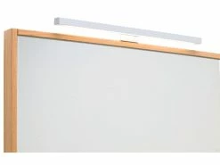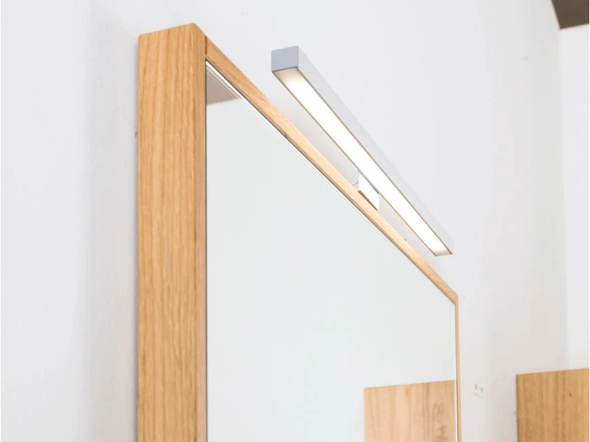 Der Flachspiegel Lina mit seinem Rahmen aus massiver, lackierter Wildeiche setzt einen schönen Akzent in jedem Badezimmer. Ausgestattet mit LED-Beleuchtung und Sensorschalter sorgt er für die optimale Ausleuchtung beim Stylen und Schminken.