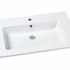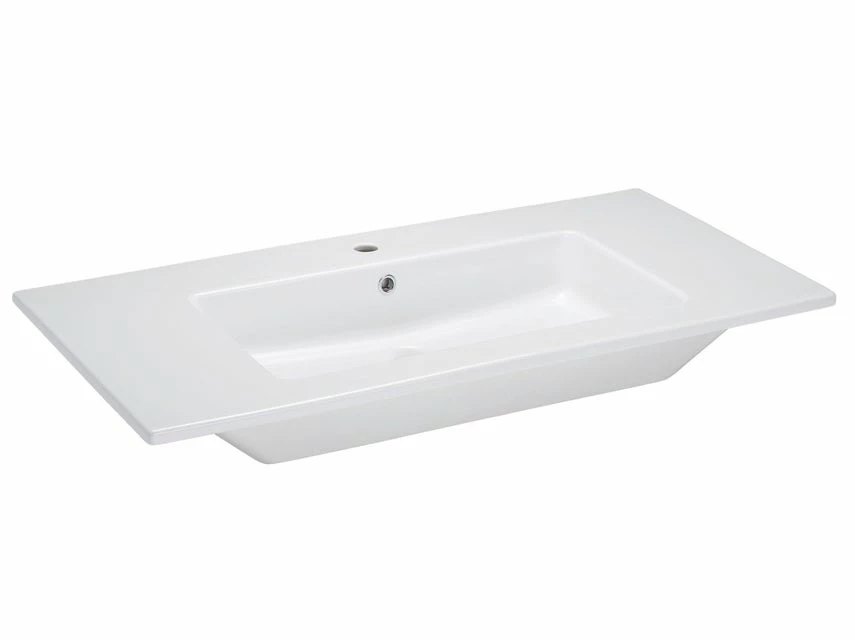 Schön geräumig und in strahlendem Weiß präsentiert sich dieses rechteckige Waschbecken in Ihrem modernen Badezimmer. Das Waschbecken ist aus hochwertiger Keramik gefertigt und bietet Ihnen beidseitig praktische Ablageflächen.