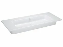 Bringen Sie Ihr Badezimmer zum Strahlen! Das Waschbecken Lina aus hochwertiger Keramik überzeugt durch seine geradlinige Ausführung und die seitlichen Ablageflächen.