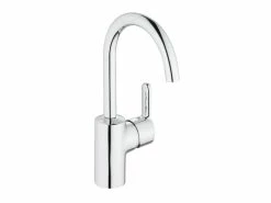 Die Top Waschtisch-Armatur mit Einhebelmischereinsatz mit Keramikscheiben hat einen glänzenden Auftritt in Ihrem Badezimmer. Ein bogenförmiger Auslauf, verchromte Oberflächen und ein schlicht gestalteter, seitlicher Hebel verleihen der Waschtischarmatur ein edles Erscheinungsbild.