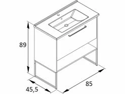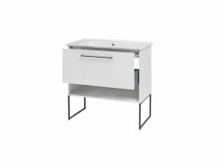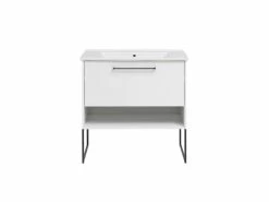 Der Waschtisch Limone hat komplett in Weiß einen strahlenden Auftritt in Ihrem Badezimmer, sein Kufengestell in Anthrazit sorgt für das gewisse Etwas und einen modernen Look. In der großen Schublade haben Ihre Pflegeprodukte, Reinigungsmittel oder Badtextilien ausreichend Platz und ein offenes Fach steht zusätzlich zur Verfügung.