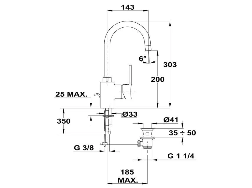 Inklusive 5/4″ Metall-Ablaufgarnitur