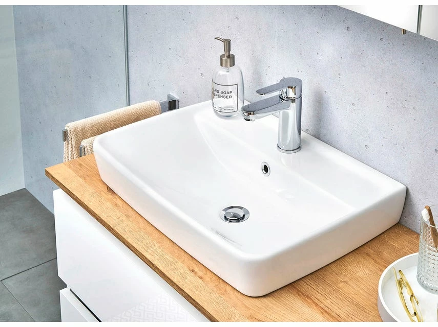 Inklusive Keramik-Aufsatzbecken und Waschtisch-Unterschrank