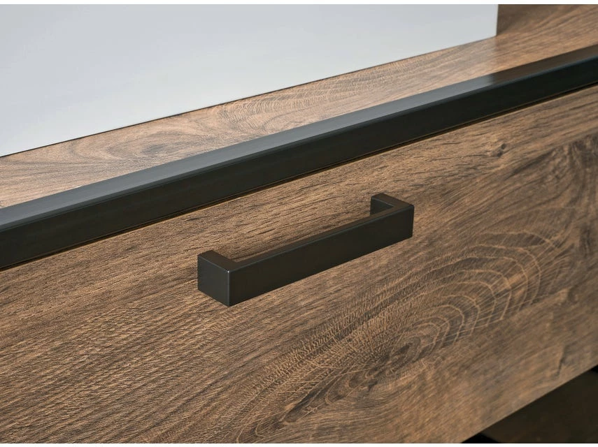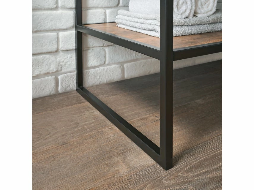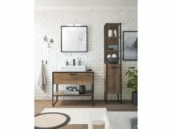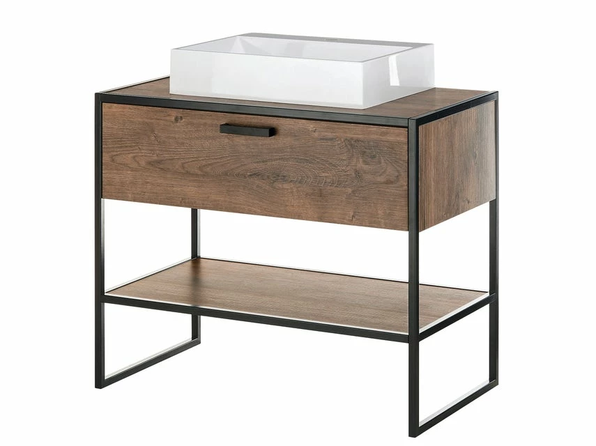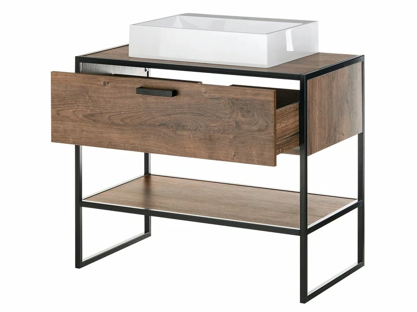 Das Waschtisch-Set Vito Spell präsentiert sich modern in dunkler Haveleiche auf einem filigran wirkenden, schwarzen Metallgestell in Kufenform. In der geräumigen Schublade finden Sie Platz für Ihre Pflegeprodukte und das offene Fach dient als Ablage für Badtextilien oder hübsche Dekoelemente. Das Mineralguss-Waschbecken in strahlendem Weiß rundet das Set perfekt ab.